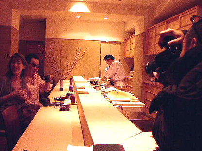 大の寿司好きのジェーンさんに喜んでもらおうと、高級寿司屋<なかむら>へ。中は撮影のため貸しきり。店の前に行列しているのは、すべて入りきれない関係者です(笑)。