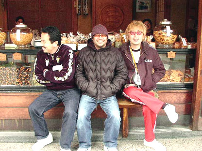 まずスタッフで構図チェック。タワレコS本部長&平間氏&箭内氏で「YMO」風! 東北出身つながりのチームワークを発揮?!