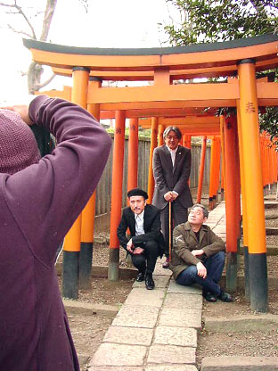 <根津神社>に移動して、鳥居をバックに撮影。神秘的な日本の雰囲気が出てます。