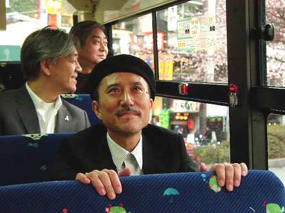 次は<都営バス>を貸しきって、バスの中での撮影!車体が揺れたり、手すりバーが視界を邪魔したり、撮影も大変。並んで座る三人の様子はなんだかかわいいかも?