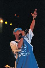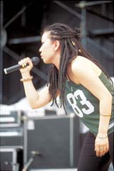 お次はご存じ、日本が誇る最強のサウンド=MIGHTY CROWN。おそらくトリの直前に登場するのでは?という予想を覆すように、贅沢にもイヴェント中盤で登場。竹中直人のダブ(!!!)という超反則技で幕を開けたこの日のセットは、ビヨンセ“Crazy In Love”やパンジャビMC“Mundian To Bach Ke”などもグチャグチャに織り混ぜた定番セットを中心に置きながら(リル・ジョンの“Get Low Remix”も新たに加わってました)、定番~ブランニューをバランスよく配置したさすがの内容。BUTCHERらの乱入も〈現場〉らしくておもしろかったし、当日配付されていた黄色いタワレコ・タオルが振り回されまくって会場中がまっ黄色になっておりました。しっかりと8月28日に行われる〈横浜レゲエ祭〉の宣伝もして嵐のように去っていった、さすがのMIGHTY。