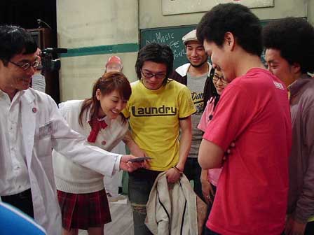 全員が書き終わったところで、黒板をバックに撮影。ポラチェックも楽しそう!以上ですべての撮影が無事終了。アットホームな雰囲気で、いつでもどこでも笑いにあふれるスペ中なのでありました。この後、出演者の皆さんは「熱血!スペシャ中学」収録へ。みなさま、おつかれさまでした!