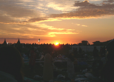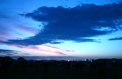 昇り始めた太陽に「おお~」という喚声を上げ、日の出写真を取りまくる観客たち。そんな最高のシチュエーションで始まったオリジナル・ラヴのステージは、彼がこれまで幾度となく作品に反映させてきた、ジャイヴ~ジャンプ・ブルースへの愛情を自ら再確認するかのような内容だった。正確なギター・カッティングとウォーキング・ベース、高揚を掻き立てるパーカッション。そこにジャストなタイミングで挿まれるキーボードとホーン。間を読む洞察力と、幾多のセッションで培われた勘の結晶を音にしたような完成度の高いスウィンギーな演奏が、地平線だらけの平地に響き渡る。タイムテーブルを見た観客の多くはオリジナル・ラヴが大トリであることに疑問をもっていたかもしれない。だが、シチュエーションにマッチし過ぎな“朝日のあたる場所”や、バンド編成が最も生きていた“Jampin' Jack Jive”など、過去曲をリアレンジしてみせる構成力、完璧に再現する演奏力の高さは、疑問を抱いていたオーディエンスをねじ伏せる力を持っていたのではないだろうか。なによりも一際目を引いたのが、テンション上がりっぱなしの田島貴男の唯我独尊なパフォーマンスだ。自分の歌声に酔いしれるかのようにタメとノビを多用し、「朝っ、朝っ、朝っ、朝っ」ととんでもなくデタラメな即興スキャットを披露。その、あまりの〈俺っぷり〉に勝新の影が映って見えたのは私だけだろうか。もうひとつ気になったのが、「なんで木暮晋也は学生服を着ていたのか?」ということなのだが、それはどうでもいい話だ。(ヤング係長)