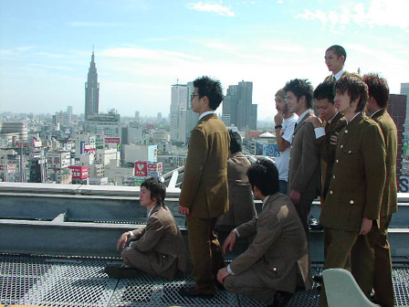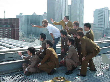 「あれが東京タワーや!」いつのまにか某企業ビルが東京タワーということに。皆で指差すところを撮影。