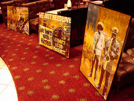 写真は今回持ってきていただいたDRAGONさんの作品。アツイものが伝わってきて見入ってしまいます。なぜか「意味は無いんですけど…」と虎の絵も用意してきてくれていた中田さん。