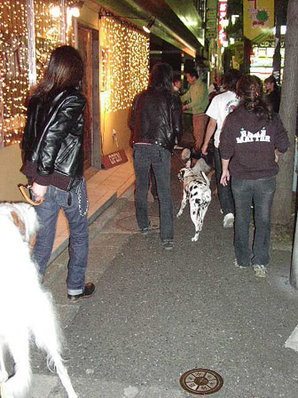 次の撮影場所へ。犬と一緒に移動する様子が自然で、散歩をしてるかのようです。チバさんは飼っている小型犬の話をしたり、イマイさんは携帯で写真を撮ったり。メンバーは皆さん犬好き?