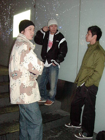 MADのボーカル・KYONOさん、ベース・UEDAさん、ドラム・MIYAGAMIさんが集結。UEDAさんはサポートブランドであり、MADとWネームのグッズも作っていることでおなじみのブランド「MOBSTYLE」のジャケットを着て登場。そしてこちらが五味さん!