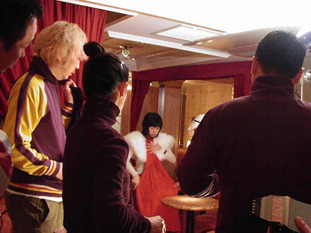 カメラマン平間さん&箭内さんが、スタイリストさんと菊川さんの衣装を選び中…。SOILの面々は基本的にスーツ、菊川さんはドレスでの撮影となります。