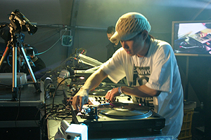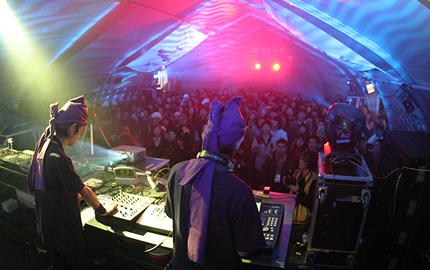 そのころもうひとつのテントではRYUKYUDISKO、GOTH-TRAD、DJ KENTAROが大活躍。沖縄音楽の要素をちりばめたRYUKYUDISKOのサウンドは韓国の音楽ファンにも好評で、誰もが気持ちよさそうに踊りまくり。さらにGOTH-TRADでもみんなビシバシ踊ります。もちろんなかには不思議そうな顔でブースを見つめる人もいますが、あのブレイクビーツに引き込まれている人は思いのほか多く、正直驚かされました。そしてやはり圧巻はDJ KENTARO。ピッチコントローラを使って童謡“さくら”を演奏するワザをはじめ、次々と繰り出されるそのテクニックはやはり感動の一言。韓国でもDJ KENTAROの注目度は高いらしく、テント内にはどんどん人が集まり続け、最高の盛り上がりとなりました。