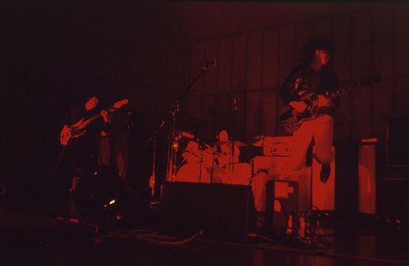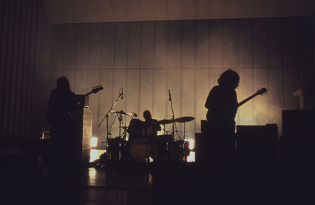 真っ赤な照明が3人の影を巨大に写す幻想的な視覚効果と、ヴォーカルを一度PA卓で拾い、そこに深いディレイをかけて飛ばしまくるというダブ的音響処理。さらにアルコールがいい感じに回ってきたせいで、後半はあまり憶えていないんだけど(ごめんなさい)、ファズによって凶悪に増幅されたギターの音の粒が耳の奥で倍の倍になってまた倍になってまた……というイキっぱなしの興奮状態にさせられてしまった。身体を揺らしながら何度も叫び、何の曲をやっているのかもわからない状態にまで持っていかれたところで、“EVIL CAR”でライヴは終了。たとえば、ヴェルヴェット・アンダーグラウンドのブートを聴いて、フィッシュマンズのライヴ・アルバムを聴いて(別にモーニング娘。のDVDでもなんでもいい)、〈このときのライブを観たかった〉と思う瞬間が誰にでもあるだろう。この日のライヴは、まさしくそんな内容で、現場にいなければわからない、その瞬間にしか味わうことができない一回性の意味みたいなことまで伝えてくれる出来事として記憶に残った。