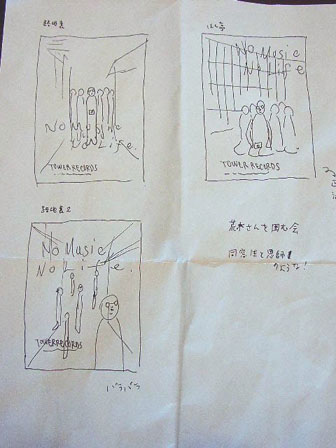 箭内さんの絵コンテ!今回の撮影は「同窓生と恩師のような」イメージで。実は来る途中の地下鉄の中で書いてきたそうで「周りの人に変な目で見られました…」と苦笑。