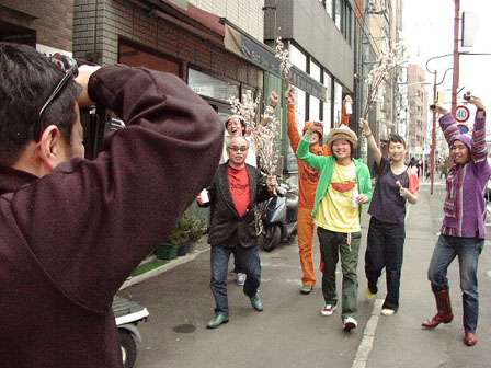「キャバクラ行こう!ここからだと鶯谷が近いかな!」「キミ(なっちゃん)とはラブホテルね!」「鶯谷はね…」と東京の風俗文化の歴史をbonobosに教えつつ、盛り上がる面々。「飲み行くぞ~!」「アラーキー!」ハイテンションではしゃぎながら移動する面々を、平間さんが後ろ向きで早歩きしながら撮影。もうとにかく楽しげ! はたから見たら、酔っ払って移動中の花見客?