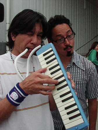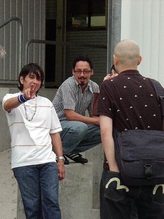 楽屋口にはマニー・マークさんとトミー・ゲレロさんの姿が!メイキングのカメラに気づいてポーズするマークさん。ゲレロさんもスマイル!ピアニカを手にしたマークさんの腕には、キティちゃんのリストバンドが!ゲレロさんは木の枝のようなものをくわえながら、おどけた顔。「今日の撮影のこと聞いてた?知らなかった~」「聞いてたよ」なんてやり取りも。