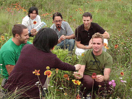 次は、花を持っているカットも撮影。そーっとトーマス氏の頭に花を乗っけ るお茶目なジャックさん!楽しげな様子を撮影。