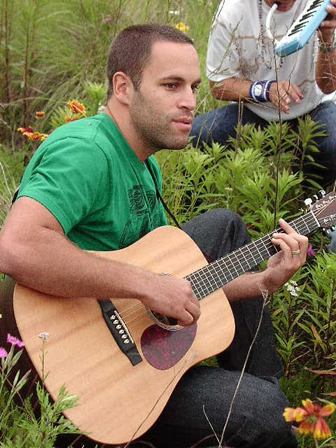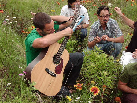 マークさんがピアニカを演奏。そこへジャックさんのアコースティックギターが到着。ギターを抱えて演奏体勢に入るジャックさん!