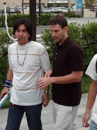 最後はトーマスさんによる4人の記念撮影タイム。以上で撮影はすべて終了。ピアニカのホースをプープー吹き上げながら歩いてライブハウスに戻るマークさんとアダムさん(笑)。30分以内という短かさでありましたが、自然体でゆるい雰囲気が素敵なsprout house bandの贅沢な撮影でありました。みなさま、おつかれさまでした。