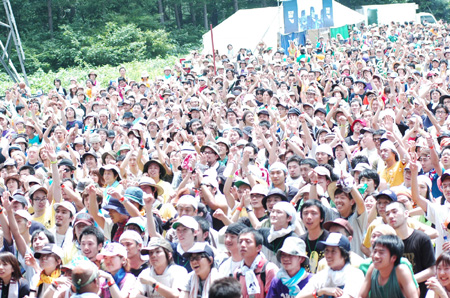 初日の朝は、〈快晴〉とまではいかないものの、雲が空全体の4割を占める程度のおおむね晴れ(とはいえ雲があっても充分暑い)。初日一発目はYour Song Is Goodで幕を開けた。暗くて湿ったライヴハウスでも過剰な開放感を体感させてくれる彼らのことだから、苗場の山中でやると開放過多で死人が出るんじゃないの?なんて朝のビールを飲みつつ呑気に冗談なんか言い合っていたものの、ライヴ直前まで場内はスッカスカ。「うわ、これ大丈夫か?」という不安を抱いたままライヴはスタート。1曲目“"2,4,6,6,1,64"number”が始まるや否や強烈なモッシュが巻き起こる。モッシュピットは踊る奴、跳ねる奴、叫ぶ奴、よだれを垂らす奴と大宴会状態に。ディズニーのコンピ盤に収録されている“Under The Sea”、「アーハ」の掛け声をコンビネーションでまわす熱帯ロック“熱帯BOY(新曲)”でも、好調に観客のペースをコントロールしていく。去年の個人的ベスト・アクト、Little Tempoと同日同時刻同会場スタートだった彼ら。終盤にはリトテンにも負けない集客を見せ、高揚感の抜け殻状態になった後に思ったのは、「なんだよ、心配して損した」ってことでした……。(*ヤング係長)