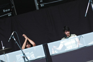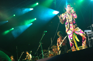 続いて足を運んだのは〈ホワイト・ステージ〉のプレフューズ73。事前情報を持ち合わせぬまま「やっぱりラップトップなんかな~」なんて具合に、若干高をくくりつつ臨んでみたところ、あまりのフィジカルなステージにびっくり仰天。ツイン・ドラムを中心とする生バンドが、ぶっといビートを叩き上げつつ、一秒先の展開が読めない人力チョップなアンサンブルを展開。プログレ・ミーツ・ヒップホップとでも言うべき異形サウンドが生成するグルーヴに、オーディエンスは完全にロック・オン。終演後は、やんやの大喝采でした。いやはやあっぱれ!(*湘南乃パンダ)