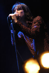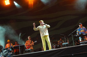 ビーチ・ボーイズにニュー・オーダーという、米英のレジェンドに挟まれた時間帯。加えて、雨脚が一段とその勢いを増し……と悪条件が重なる中、モービーのライヴがスタート。レイヴ時代の懐かしダンス・チューンが時折挟み込まれる構成に、最初は反応が鈍かった客席も、徐々にアップリフティング。モッシュピット付近では泥だらけになって踊りまくる人多数。思わず筆者も膝まで濁流に浸かりながら大騒ぎしてみると・・・た、楽しい!!ずぶ濡れのやけくそ気分にはレイヴのりの曲がぴったりであることを実感しました。その後もレディオヘッドやAC/DCのカヴァーまで飛び出すサービス精神あふれるステージを見せてくれたモービー。間違いなくいい人だと思います。(*湘南乃パンダ)