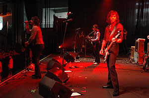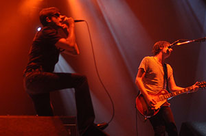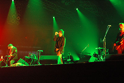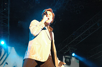 サブウェイズはスタジアムで観たかったけど、デパーチャーはやっぱりメッセが似合ってる。濡れたネオンみたいな艶っぽいギター・サウンドに、原色の照明が美しく映えていた。ヴォーカルのデヴィッド・ジョーンズをはじめ、5人のメンバーはマメに動いて観客を盛り上げる。ニューウェイヴ直系のダンス・ビートも炸裂、UKロックの持つ色気が満喫できるショウだった。*村尾