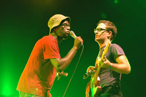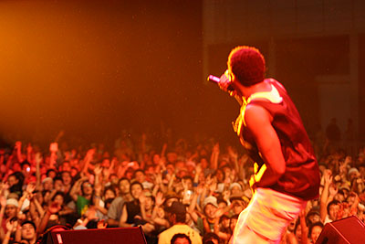 「リズムだけ、って感じですよね。カッコイイ」と、取材終わりにM.I.A.を評して言った向井秀徳の言葉を思い出す。そんなライヴだった。ブッシュ大統領が〈M.I.A.〉と口にするオープニングのコラージュ映像(笑える)に続き、DJにディプロ、黒人サイド・シンガーを従え登場したM.I.Aは、手足の長い小顔のキュートなスリランカ人といった風貌からパワフルなラップを繰り出しまくる。バイレファンキ(ブラジルのゲットー・テック)のミックスCDもヤバかったディプロから放たれる変則的なビートに身を揺らすM.I.A.の、ゆったりとしつつ、欧米のリズム感とは違うプリミティヴで呪術的な佇まいが魅力的だ。そしてなんといっても雄叫びのようなハスキーな声が快楽値を高める。未来的で刺激的な音楽性と民族的な儀式が結びついたかのような興奮のステージングだった。*内田