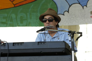 とにかく暑かった〈BEACH STAGE〉。ヤケドしそうな砂浜を踏みしめて観客が見守るなか、特設ステージにはバンド編成でマニー・マークが登場。やんちゃそうなメンバーを従えて、今回マニーはキーボードだけではなく、ギターも弾きながらロックンロールをエンジョイしていた。まるでパーティー・バンドのような絶妙なユルさが、まったりした昼下がりにはピッタリだ。*村尾