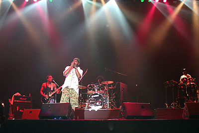 “Star/Pointro”“Boom!”など、最新アルバム『The Tipping Point』からの曲をアッパーに繰り出したかと思えば次の瞬間にはJB譲りの怒濤のソウル・レヴューに突入。オールドスクール・ナンバーからナズの『God's Son』に収録された“I Can”の元ネタのあの曲やビヨンセの“Crazy In Love”の元ネタのあの曲などの耳馴染みある曲、そしてダークネスの楽曲のカヴァーまで縦横無尽のファンク大会がまた悶絶もの! クエストラヴのドラミングを要にパーカッション、ギター、ベース、キーボードぞれぞれのプレイに見所満載で、贅沢極まりない一時だった。右斜め前の密集地帯でずっとブレイクダンスしてたB君はちょっとウザかったけど。*内田