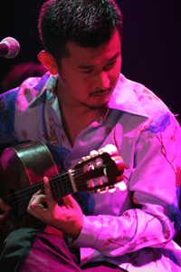 バンド編成、ソロ、コラボレーションとステージごとにフレキシブルなパフォーマンスを続けるおおはた雄一だが、カフェ、バーやラウンジでのライヴで鍛えてきただけに、〈SALOON〉のくつろいだ雰囲気のなか水を得た魚のよう。ひょうひょうとしたMCを挟みながら、いつも以上にリラックスしたムードでいとも簡単に超絶プレイを繰り広げていく。ライ・クーダー“Cancion Mixteca”、ボブ・ディラン“風に吹かれて”のカヴァーにはアブストラクトな味わいさえ。食事の音までが彼の音楽のすてきな伴奏になっていた。