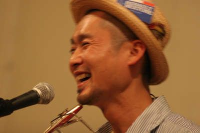 ステージに上がったとたん、会場が穏やかな祝祭感に包まれる。ウクレレを片手に、おもむろに演奏を続けるなか、新作『息を吸いこんで』にも忍び込んでいた緊張感、彼の声のなかにある寂しさやぽつりとした空気をしみじみと感じる。セットは新曲や、“見上げてごらん夜の星を”のカヴァー、そしてなんとROCKING TIME時代の“雲の上まで”を! そしてハナレグミも取り上げた“ありふれた言葉”には会場からひときわ歓声が起こる。彼のうたにある永遠の蒼さと暖かさを身近に感じることができた。