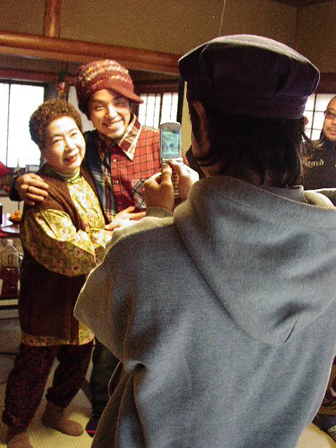 おばちゃんと記念撮影をして、本日の撮影はすべて終了!POMERANIANSの面々はそのままコタツで一休み。気のせいかグッタリ?ポラチェックしながら、「POMERANIANS vs おばちゃんだった感じ」「バンド生命、大丈夫かな?」「でも女優と初共演!」と撮影をふり返ってました。和み系のPOMERANIANSメンバーと強烈なおばちゃん1号の爆笑撮影でありました!皆さま、おつかれさまでした。
