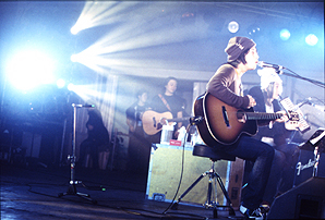 紅に染まったステージに躍り出てきたのは、そう、中田裕二率いる椿屋四重奏。アルバム『薔薇とダイヤモンド』からの“プロローグ”で始まったステージは、“成れの果て”、本人いわく〈小ヒットした〉シングル曲“紫陽花”など、艶なギター・ロック・サウンドを惜しみなく展開。中田がギターからハンド・マイクに持ち替え歌う“螺旋階段”“踊り子”では、色っぽいアクションを見せオトメ心を直撃。ラスト・ナンバーは“小春日和”。名曲に季節は関係ナシ。*久保田