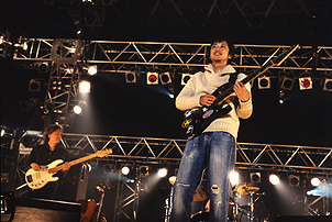 シングル“粉雪”で新たなファンを大量に獲得したレミオロメンだけに、この日のライブに向けられる注目度はかなりのものがあったと思う。きっと初めてライブを体験する人も多く、その胸ははちきれんばかりの期待で膨らんでいたはずだ。が、結果として彼らは、そんな期待を軽く凌駕するほどに激しく、圧倒的なパフォーマンスを観せてくれた。3ピースとは思えないほどに厚みのある、パワフルなサウンド。そして曲の持つ表情に呼応しつつ、つい口ずさんでしまうほどに美しいメロディーを最良の形で表現するヴォーカル。それらが一体となることで、レミオロメンというバンドが持っている強力なエネルギーは僕らの全身を激しく貫いたのだ。アップなナンバーでグイグイと会場の空気を沸騰させていったステージ、そして約11時間にもわたるこの日のイベントは誰しもが待ち望んでいた“粉雪”という素晴らしい楽曲で締めくくられた。彼らへ向けていた期待……それはすべてが終わったとき、大きな感謝と感動へと変わっていた。*もり