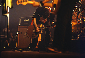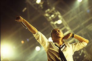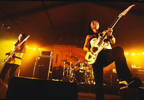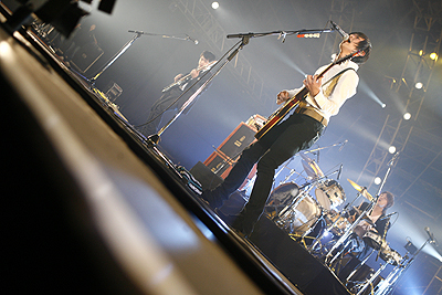 “水の中のナイフ”“BLACK SUNSHINE”で幕を開けたART-SCHOOLのステージ。2005年、数え切れないほどライブを行ってきた彼らの成長ぶりをこのフェスでも遺憾なく発揮してくれた。「後ろのほうまでいっぱいで嬉しいです。ありがとうございます」と言葉少なに語るヴォーカリスト=木下だが、興奮で沸いた観客に一生懸命応えようとする姿勢が手に取るようにわかる。名曲“クロエ”に続き“サッドマシーン”“UNDER MY SKIN”と続いた怒涛の音の洪水のラストは、新たなART-SCHOOLを表現していると言っても過言ではない“あと10秒で”。「皆さんの2006年が良い年でありますように」と言う木下。その想いのこもった演奏に、彼らが去った後も思わず余韻に浸ってしまった。*伊藤