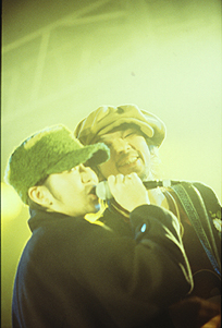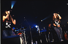 少年ナイフが観られる、と胸を躍らせて向かったMOON STAGE。はちきれんばかりの人のなか、おそろいの白の衣装で登場した少年ナイフの2人は、昨年発表されたアルバム『HEAVY SONGS』収録曲や新曲を次々に披露。そんななか、さらに会場を沸かせるプレゼントが。ラスト2曲でBEAT CRUSADERSのヒダカトオルが飛び入り参加で登場!! どよめきもおさまらないうちに “I wanna be sadeted”の競演が始まった。これぞまさにロック! この場にいられたことに感謝せずにはいられない瞬間だった。キュートでポップで、そして本物のロックが体感できる少年ナイフのライブ。2005年の終わりにこのライブが観られて本当に良かったと感じた。*伊藤