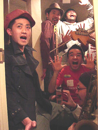 最初の撮影は、なんとトイレにRISINGTONES&猫さんで計8名入って行うことに。人が一人通れるぐらいの通路スペースから、カメラマン平間さん&ディレクター箭内さんが撮影。メイキングカメラも脇から手を伸ばして、中の様子を激写。トイレとは思えないほど図になる?というか猫さん、本当にパンツ脱いでますっ!「ニャー!」「ニャーッ!」「ニャー!!」と皆で猫さんのネタをやる息ピッタリの声に、外のスタッフも爆笑。