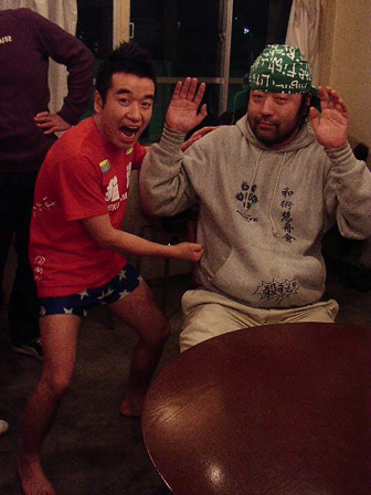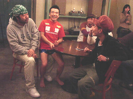 店内のテーブルに移動。津村さんと猫さんが並ぶと、身体の大きさとキャラの違いが際立って面白いと評判。「タテ社会!タテ社会!」と絡む猫さんに、無言でノる津村さん。しまいには津村さんのひざに猫さんが座ることに・・・。すっかり仲良し?ほんとに猫っぽい・・・。