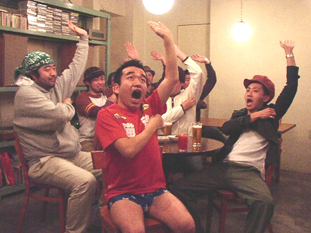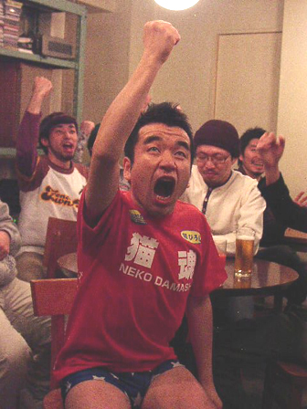 続いて、猫さんが音頭を取ってRISINGTONESメンバーと<ギャグ100連発>シーンの撮影。RISINGTONESの面々も笑ってしまいながらも「ラッセラーッ!ラッセラーッ!」「ポーツマス!ポーツマス!」「オホーツク!」「ワキ毛を抜いて・・・」「昇竜拳!」。