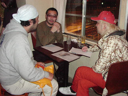 撮影が終わってもバーにしばらくとどまる皆さん。同い年(28才)ということもあって意気投合したドリーさんと猫さんも大盛り上がり!もちろんRISINGTONESのCDと猫さんのDVD交換会も。平間さん&箭内さんと話しこむ津村さんは、平間さんファンとのことで緊張気味?周りから挙動不
