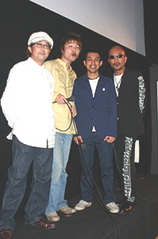 3月25日の初日舞台挨拶より。左から川村ケンスケ、茂木欣一、Pod(moderndog)、竹中直人