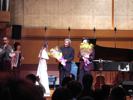 中島さんがアランさんのピアノに合わせてゴスペル隊と共に“ALL HAND TOGETHER” “WHAT A WONDERFUL WORLD”他を披露し、エルヴィスさん&アランさんがニューオリンズ・スタンダードの数々を演奏した豪華共演ライブに会場は立ち上がり、大きな拍手を送りました!ライブ後には中島さんから大御所のお二人へ花束の贈呈も。
