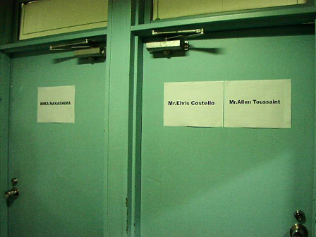 ライブが終わると取材タイム。こちらは手前から「Mr. Elvis Costello、Mr. Allen Toussaint」「MIKA NAKASHIMA」と書かれた楽屋です。