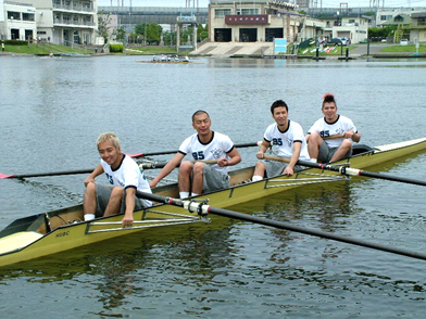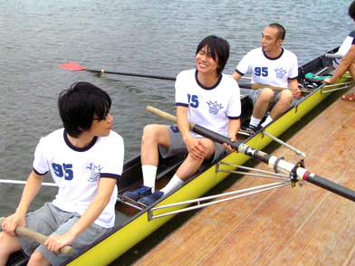 いよいよボートが到着して、くるりチームとRIP SLYMEチームに分かれて乗艇!くるりチームは「ボートに乗りたい!」とリクエストした岸田さんはもちろん、佐藤さんもうれしそう。バランスをとらないと結構揺れるため、RIP SLYMEチームの笑顔がこわばります…!FUMIYAさんは今日の撮影はお休み。