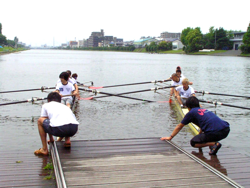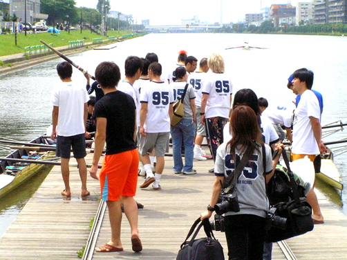 コース中央のデッキに移動して撮影。ここでもボートをおさえながら、撮影の一瞬だけ手を離して…のくりかえし。