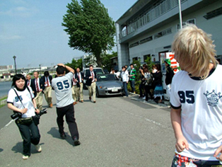 天気もいいので、そのまま<土手を歩く>という青春っぽいシーンを撮影することに。勢いあまって、走り出す面々!RIP SLYME・ILMARIさん、くるり・大村さんは「位置について」ポーズまで取って本気でダッシュ(笑)!ディレクター箭内さんも、平間さんも全力で走りながら撮影!