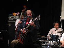 〈SALOON〉で行われたブルース講座では、ジャンプ・ブルースをラジオDJ風に紹介。楽曲がかかりだすと自ら踊り、会場をどっかんどっかん言わせていた吾妻光良。バッパーズでのライヴはその盛り上がりを余裕で超える、フロア大揺れの40分。8月にリリースされた新作『Seven&Bi-decade』からの楽曲を中心に、未音源曲“栃東の取組見たか”などを盛り込み一気に疾走。おっさんがクダ巻き続けているだけのような歌詞で若い女の子が体を揺らす光景は奇妙なんだけれど、そんなことどうでもよくなるほど楽しいステージなんだからしょうがない。「明日があるんだからさっさと終わらせよう」というMCの割には2度のアンコール披露するなど本人もノリノリのご様子でした。*ヤング