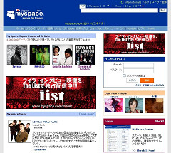 MySpaceの日本語版〈MySpace Japan〉のトップ・ページ