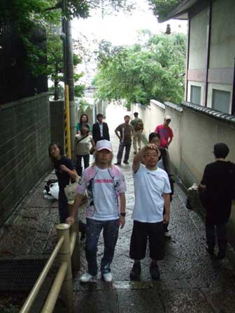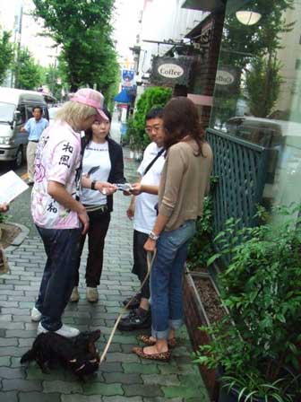 ちょうどロケハンを終了して戻るとSHIHOさんも準備完了。今回は京都の実家から愛犬ヴルちゃんも同行、気が付けば雨も上がる。「この奇跡はSHIHOさんのおかげや!」(森寺君談)実は当日リーダー金澤君遅刻! 待つ間にしばし談笑TIME。「ずっと来なけりゃいいのに…」(メンバー談)気持ちはわかる。