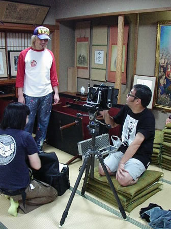 カメラチェックをする平間さん。ファインダーに高さを合わせるために座布団を重ねる様子が笑点風(笑)?「マーシーがいた方が、マーシー! 」とザ・クロマニヨンズにちなんだシャレを言って、ディレクター箭内さんに「一枚減らしましょう!と座布団を没収しかけられる・・・の図です(笑)。