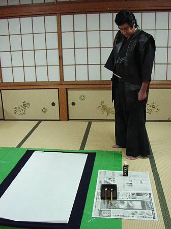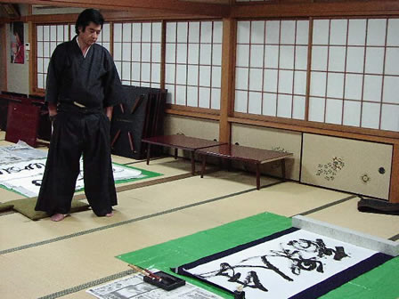 まずは藤岡さんに書道で「NO MUSIC,NO LIFE.」を書いていただくことに。「英語を筆で書くのは初めてだね」と面白がる藤岡さん。集中力を高めて、一気に書き上げる様子は迫力! 書き終わると「フーーーッ」と息を吐き、何枚か満足のゆく作品を書くまで挑戦。「音楽人生」バージョンも書いてくださいました。