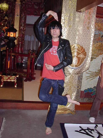 本堂へ移動。メイキングカメラに向かっておどけるヒロトさん。シェ~!
